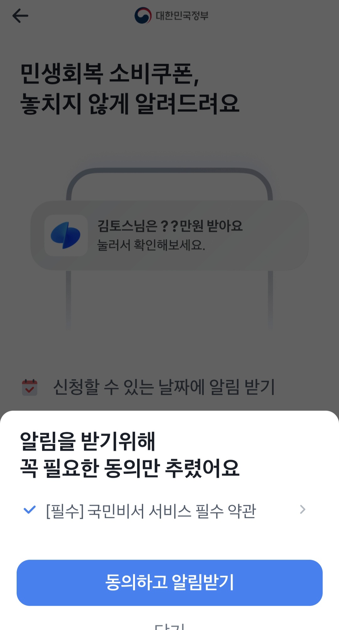민생회복 소비쿠폰 토스앱 국민비서 알림 서비스 신청을 하면서 정말 놀라웠던 점은요!!