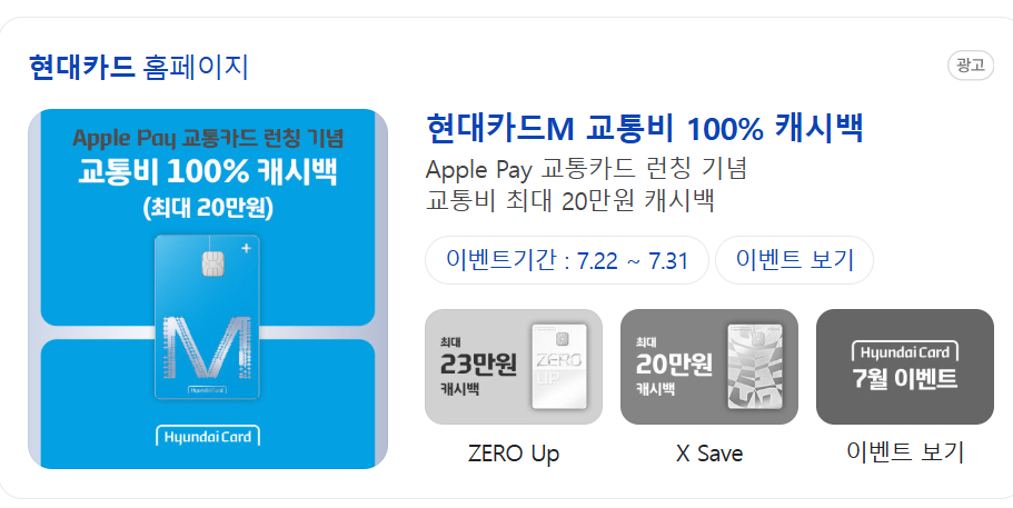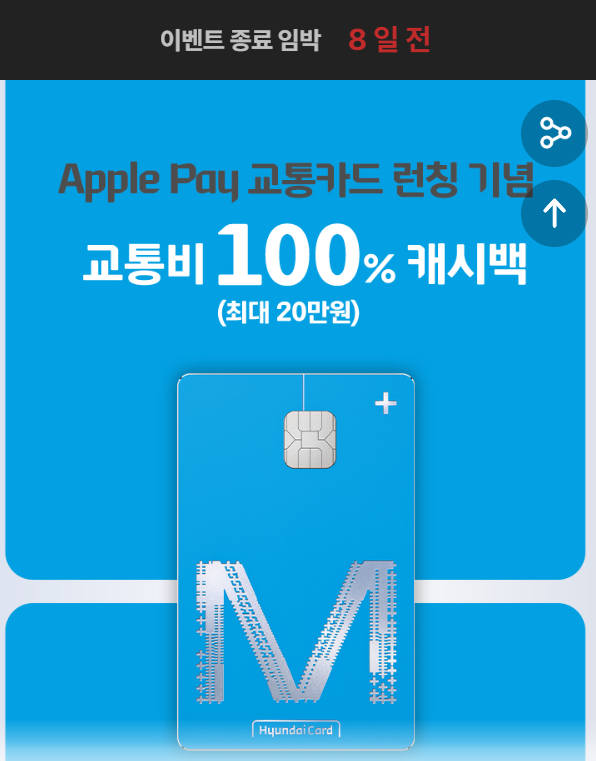 애플페이 교통카드 이번에 현대카드로 사용해보실 분들은 이 기회를 이용해서 이벤트 신청하는 것도 좋은 기회가 되겠네요!!