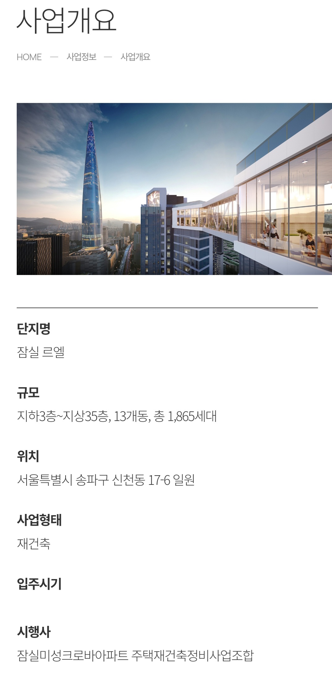 잠실르엘 롯데건설 소개 홈페이지 바로가기 클릭