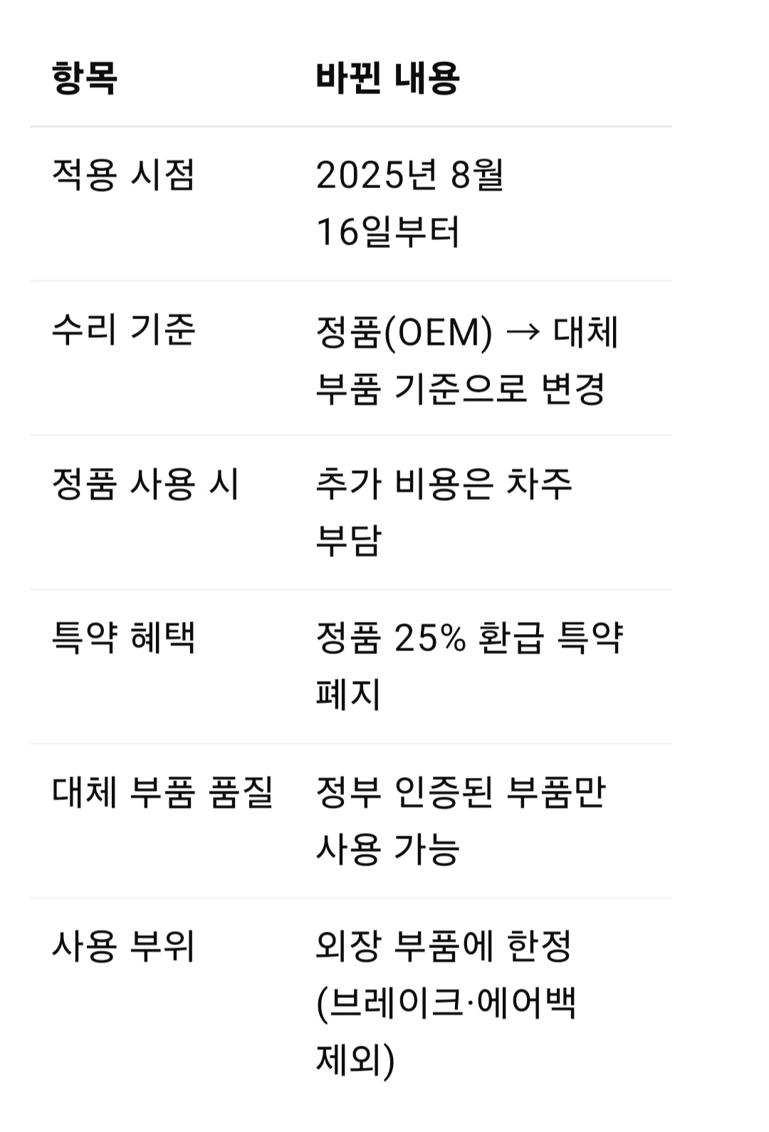 자동차보험 약관 개정, 8월부터 정품 안 써준다는데 괜찮은 걸까?