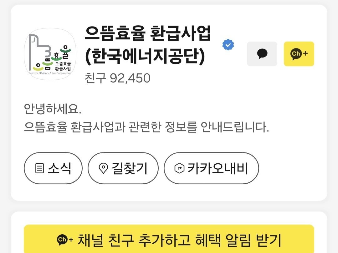 으뜸효율 가전 환급 카톡 채널 추가하기